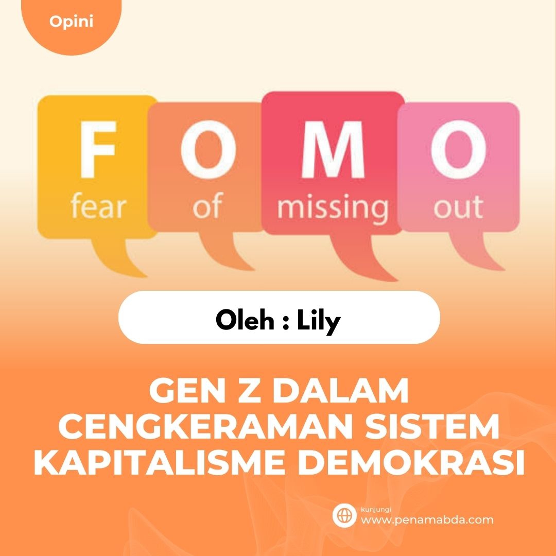 Perlu diketahui juga, akar munculnya gaya hidup FOMO adalah sistem liberal kapitalisme demokrasi. Sistem rusak ini, membuat para Gen Z bergaya hidup bebas, hedonistik, konsumerisme dan materialistik. Semua kesenangan dunia sesaat mendominasi dan menjadi prioritas utama. Di sini, para Gen Z tidak lagi memandang apakah tren ini termasuk dalam kebutuhan atau keinginan. Sehingga tidak sedikit yang merasa lebih baik FOMO dari pada harus fokus sekolah.