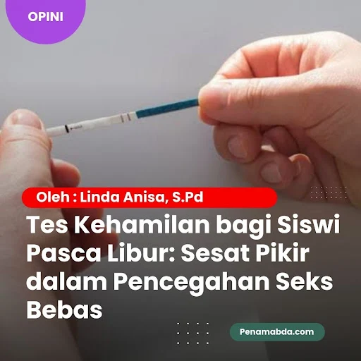 Tes kehamilan terhadap siswi pasca liburan, seperti yang terjadi di Kabupaten Cianjur, adalah contoh dari sesat pikir dalam mengatasi masalah pergaulan bebas remaja. Tes kehamilan bukanlah solusi untuk mencegah pergaulan bebas, karena masalah ini lebih kompleks dan membutuhkan upaya yang lebih menyeluruh. Islam menawarkan solusi yang lebih komprehensif dan efektif melalui pendidikan yang berlandaskan akidah Islam dan penerapan sistem Islam dalam kehidupan sehari-hari. Dengan demikian, generasi muda dapat dijaga dari kerusakan moral, pergaulan bebas, dan perilaku maksiat yang merusak masa depan mereka.